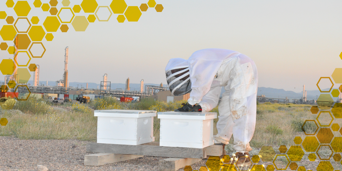 When thousands of feral honeybees swarmed workers at an Altus Midstream compressor station, foreman and professional apiarist (beekeeper) Todd, was called in to help and safely relocate the bees to dedicated hives. Apache Corporation owns 79% of Altus Midstream.